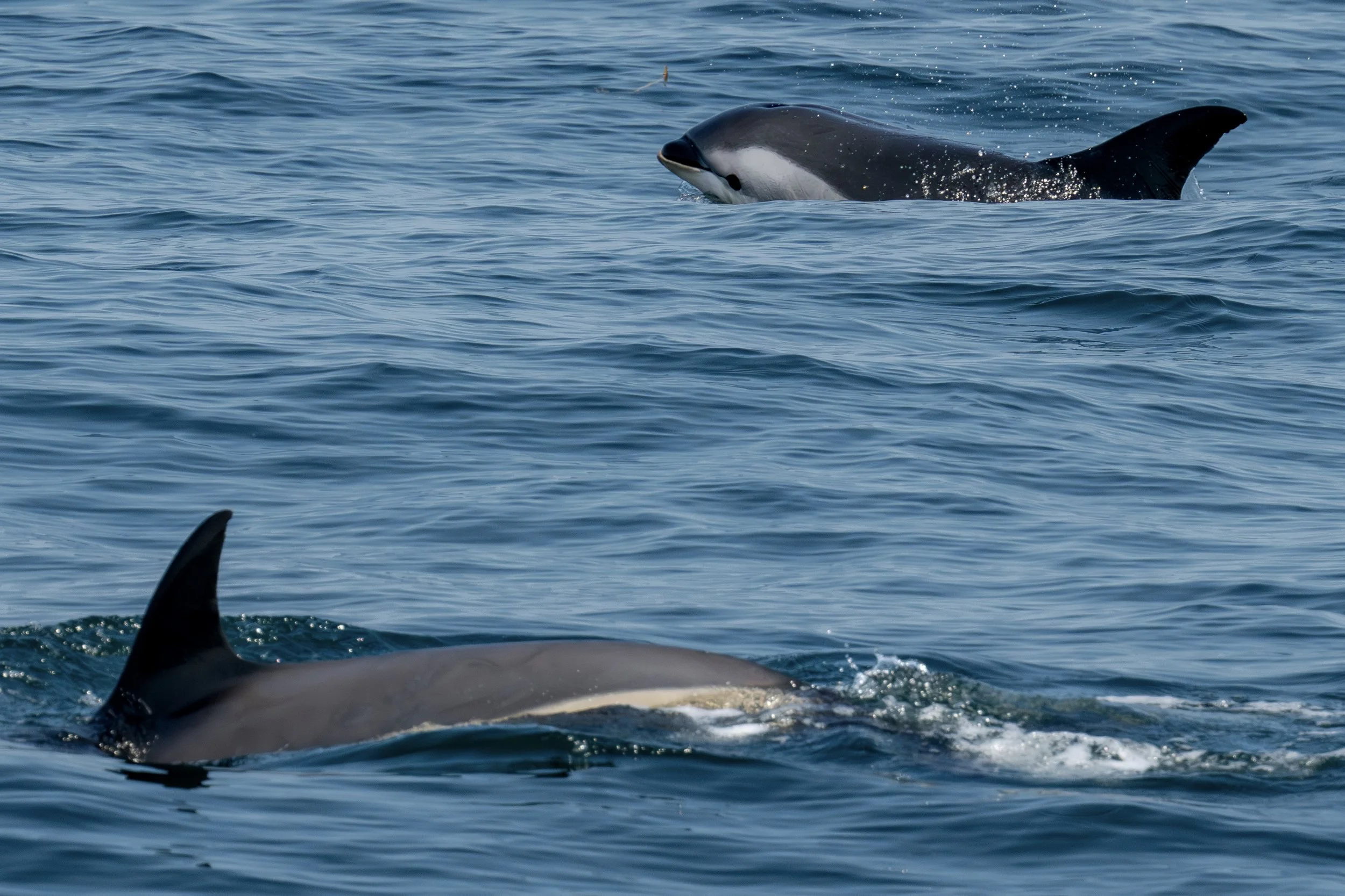 "Atlantic Companions" Two Atlantic white-sided dolphins move in rhythm across the open ocean - swift, graceful, and perfectly attuned. They are among the most social ocean travelers, often seen in dynamic pods. they can reach speeds of 25mph, using coordination and play navigate their vast blue world.